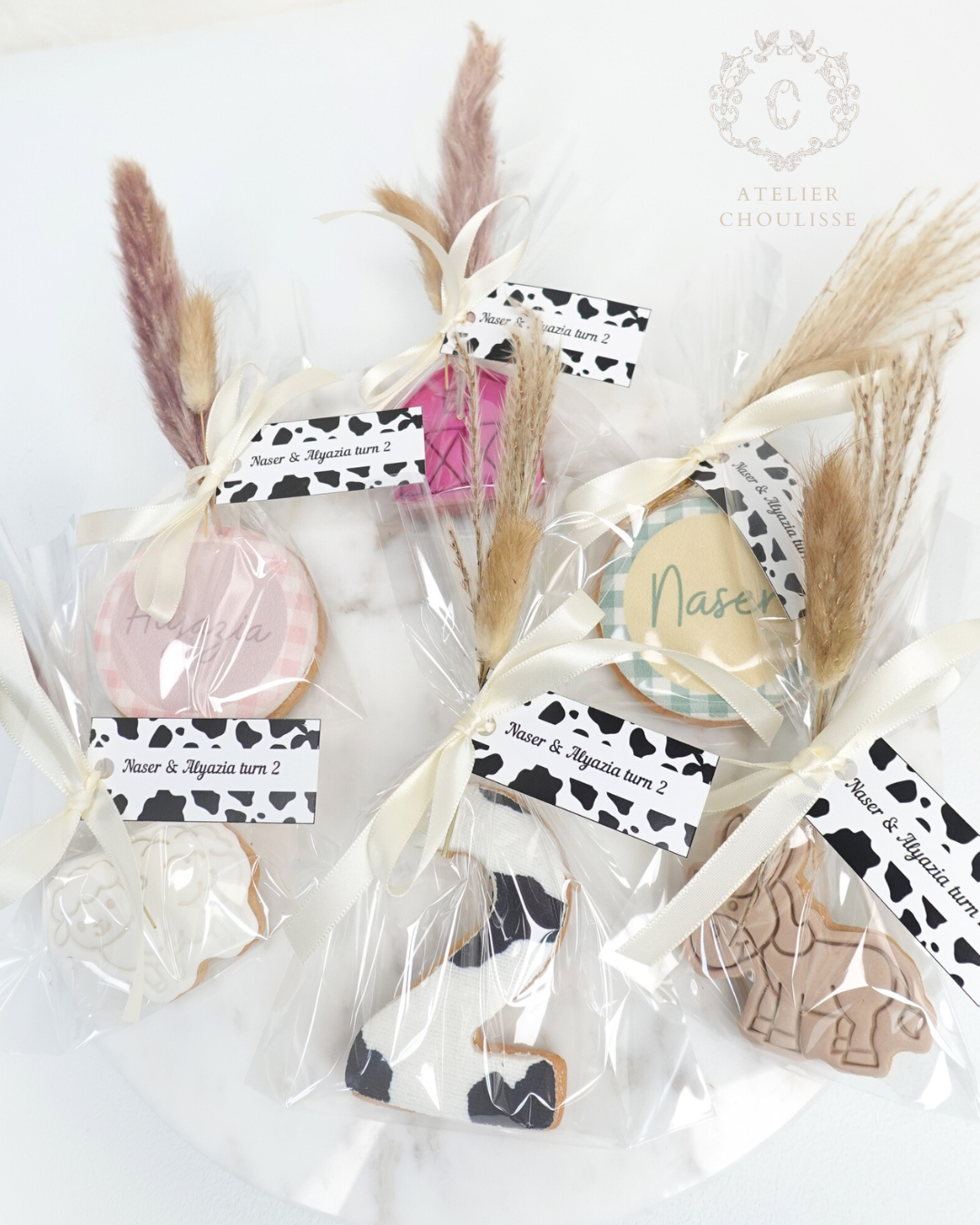 Our Farm-Themed Cookies are thoughtfully designed to bring a touch of rustic beauty to your event. Each cookie is handcrafted with artistic detail—featuring soft farm-inspired designs, delicate wheat attachments, and elegant customised tags that highlight your celebration with a personal touch.